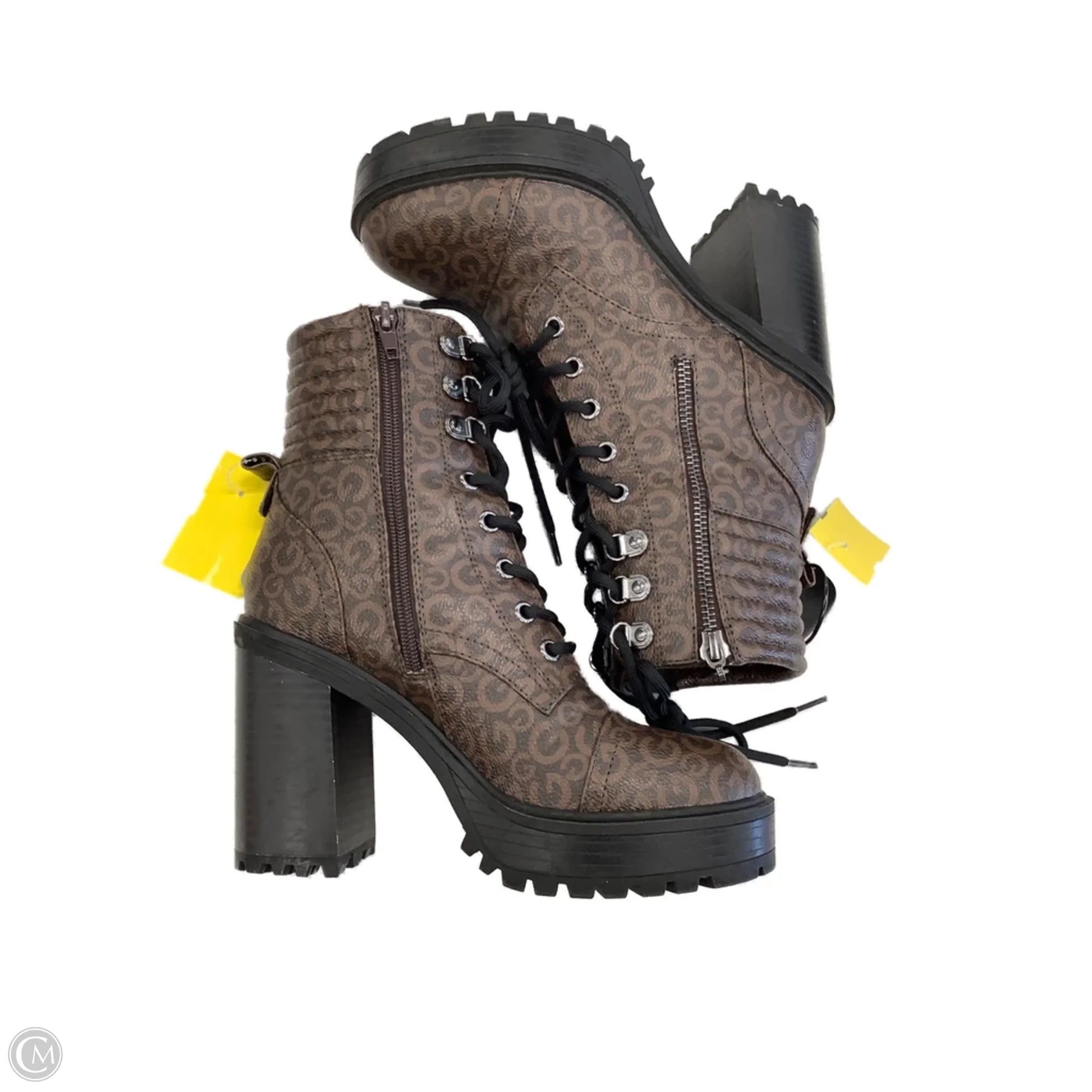Boots Ankle Heels By Guess In Brown, Size: 6