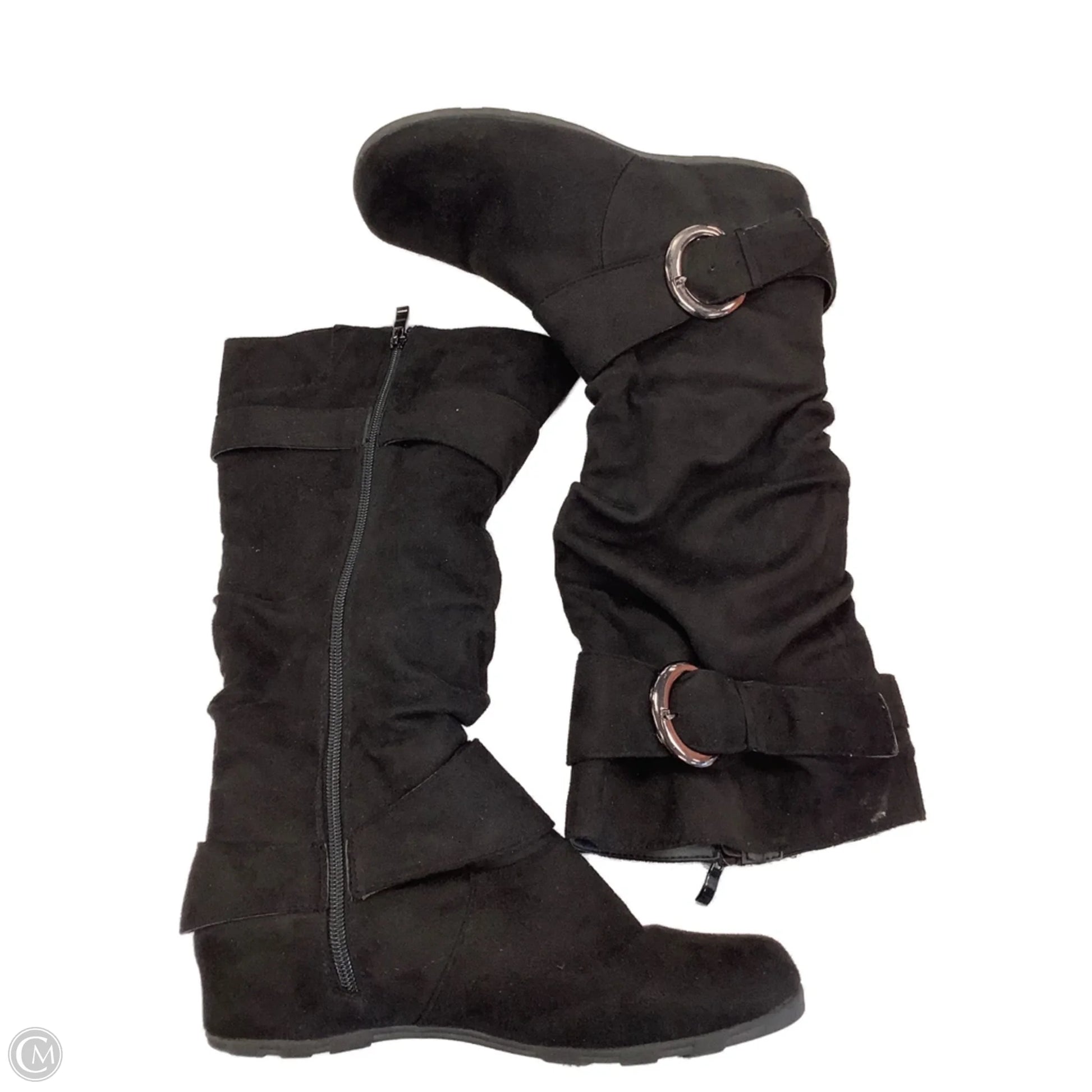 Boots Mid-calf Flats By Clothes Mentor In Black, Size: 10