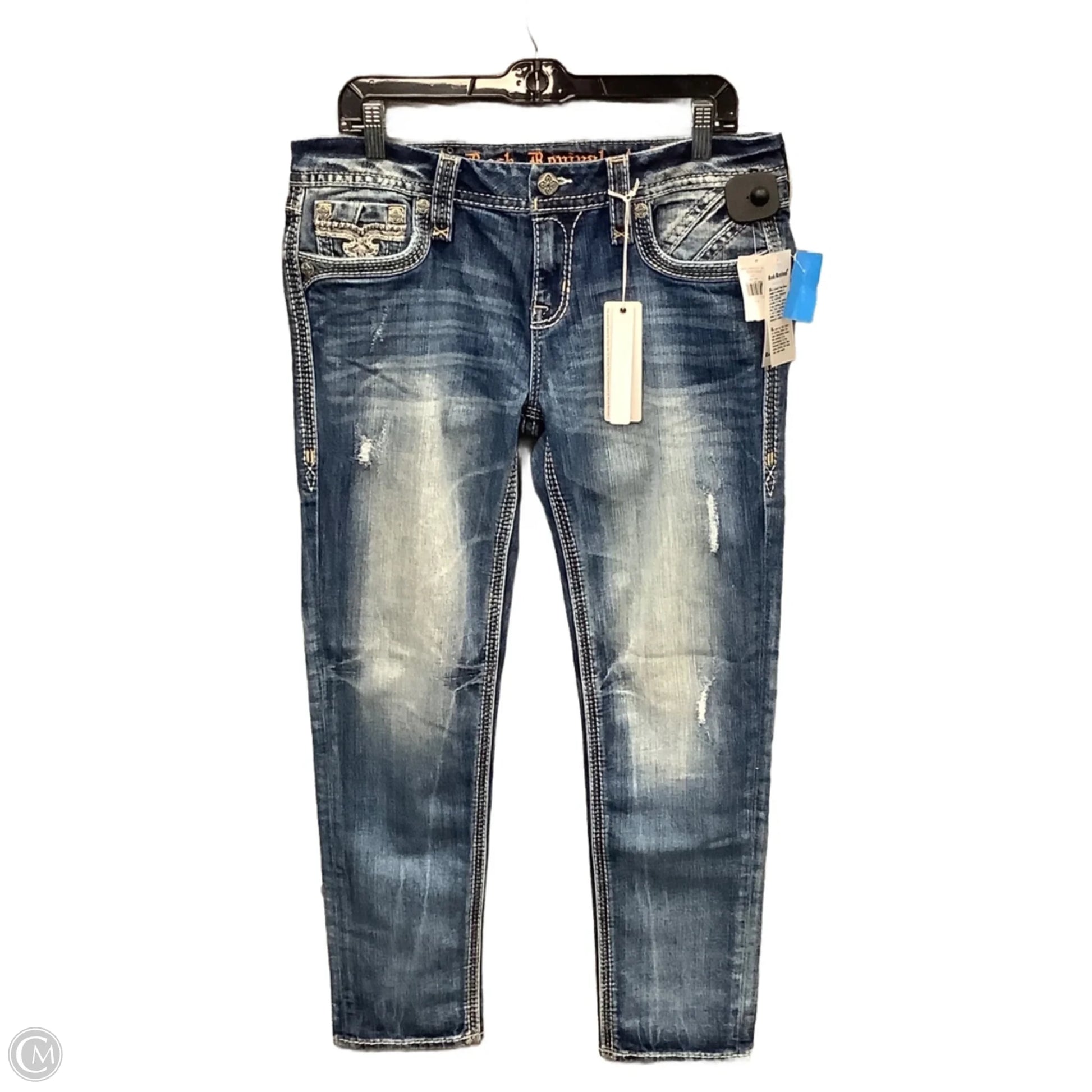 Jeans Skinny By Rock Revival In Blue Denim, Size: 12