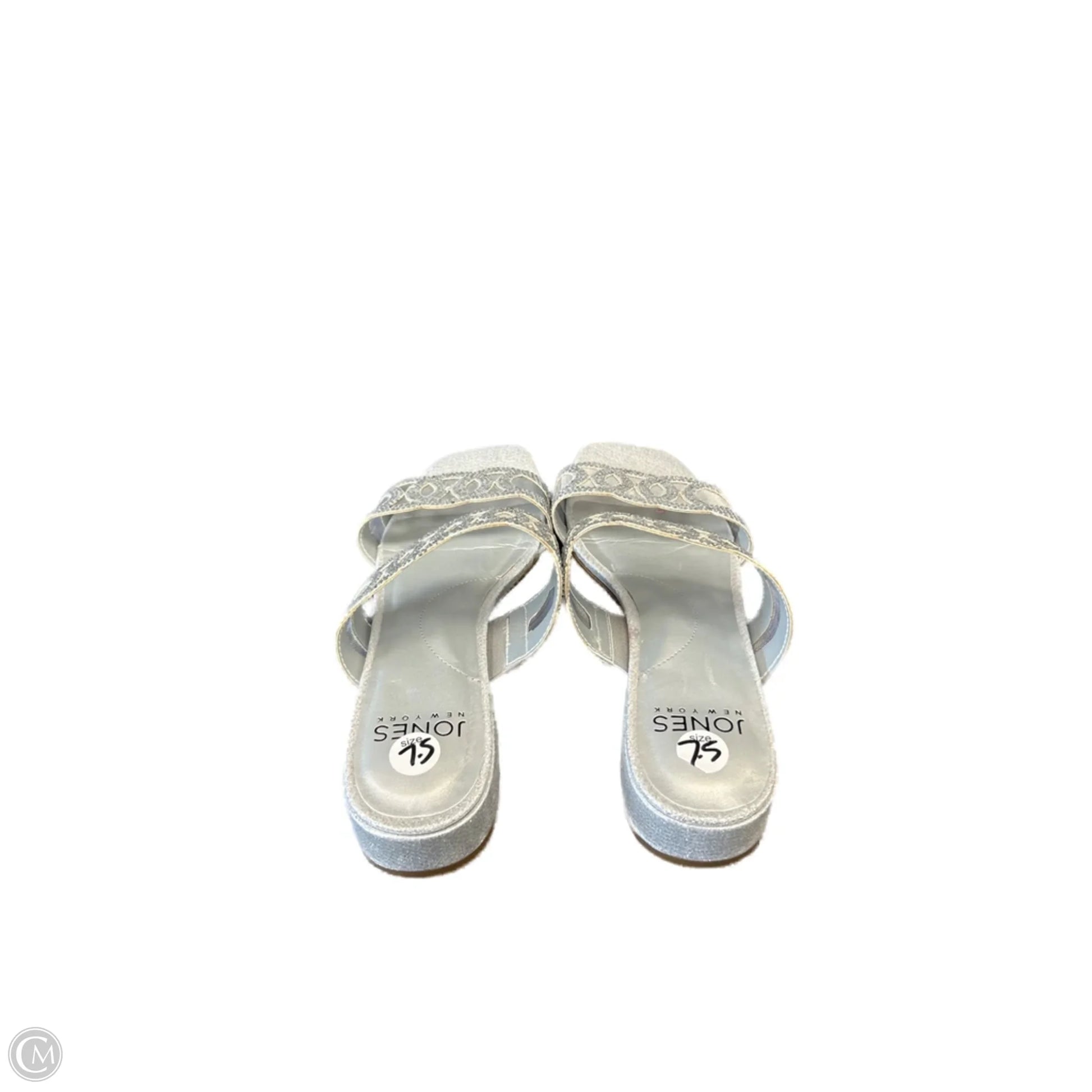 Step into sophistication with these Jones New York silver block heels. Size 7.5 ensures a perfect fit, while the sleek design adds a touch of elegance to any outfit.