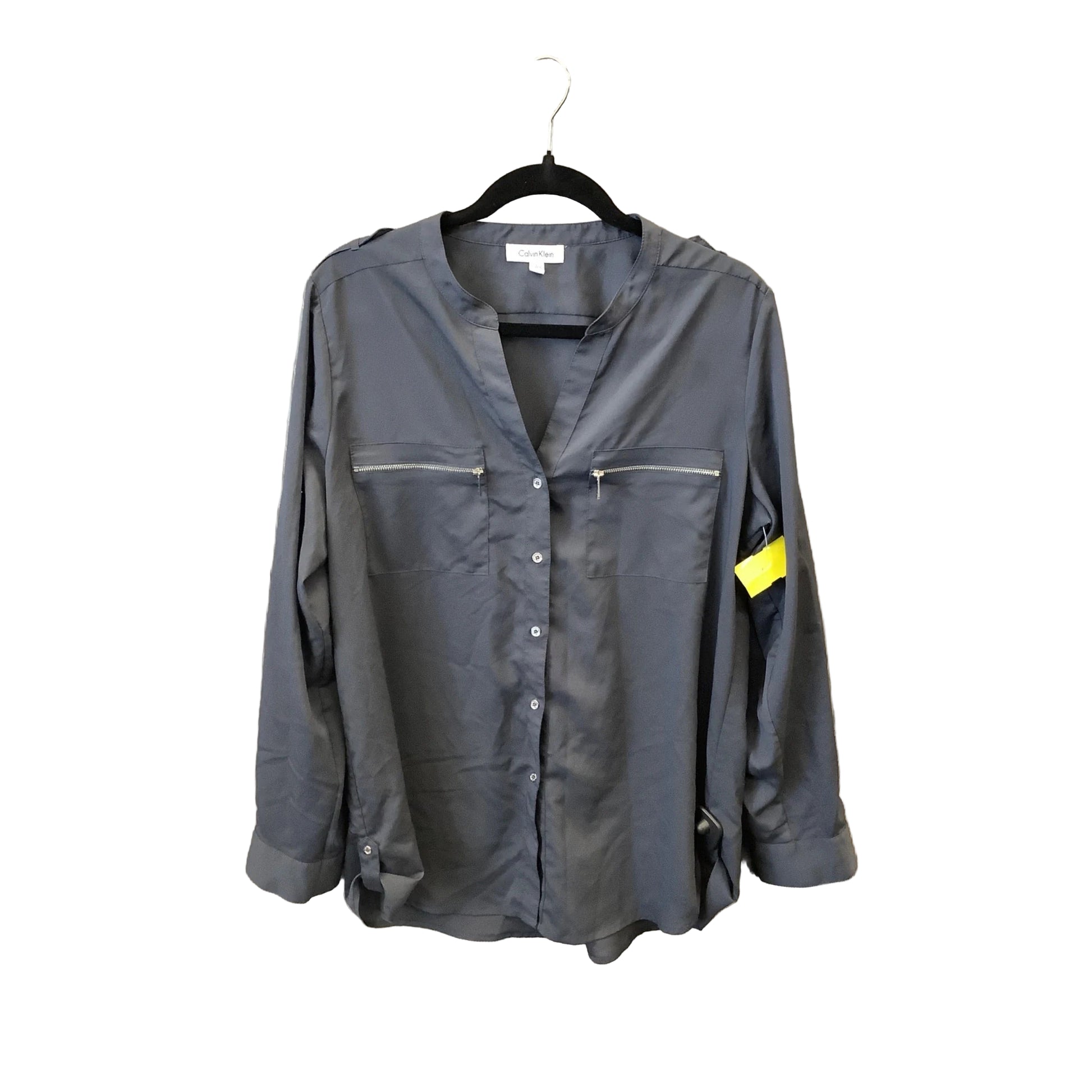 Top Long Sleeve By Calvin Klein In Grey, Size: L