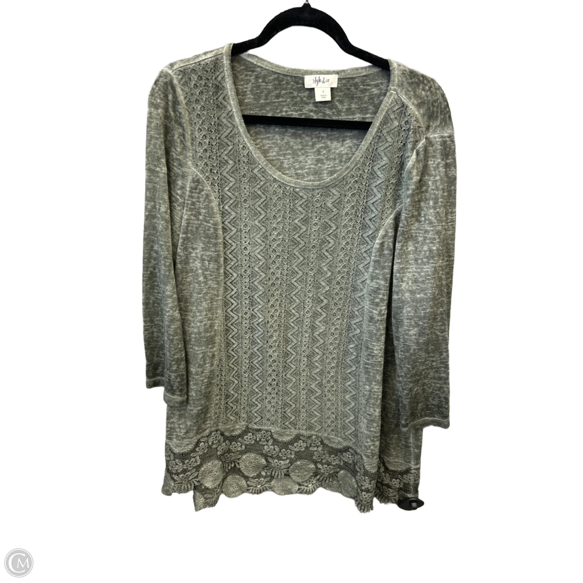 Top Long Sleeve By Style And Co Collection Women In Green, Size: L