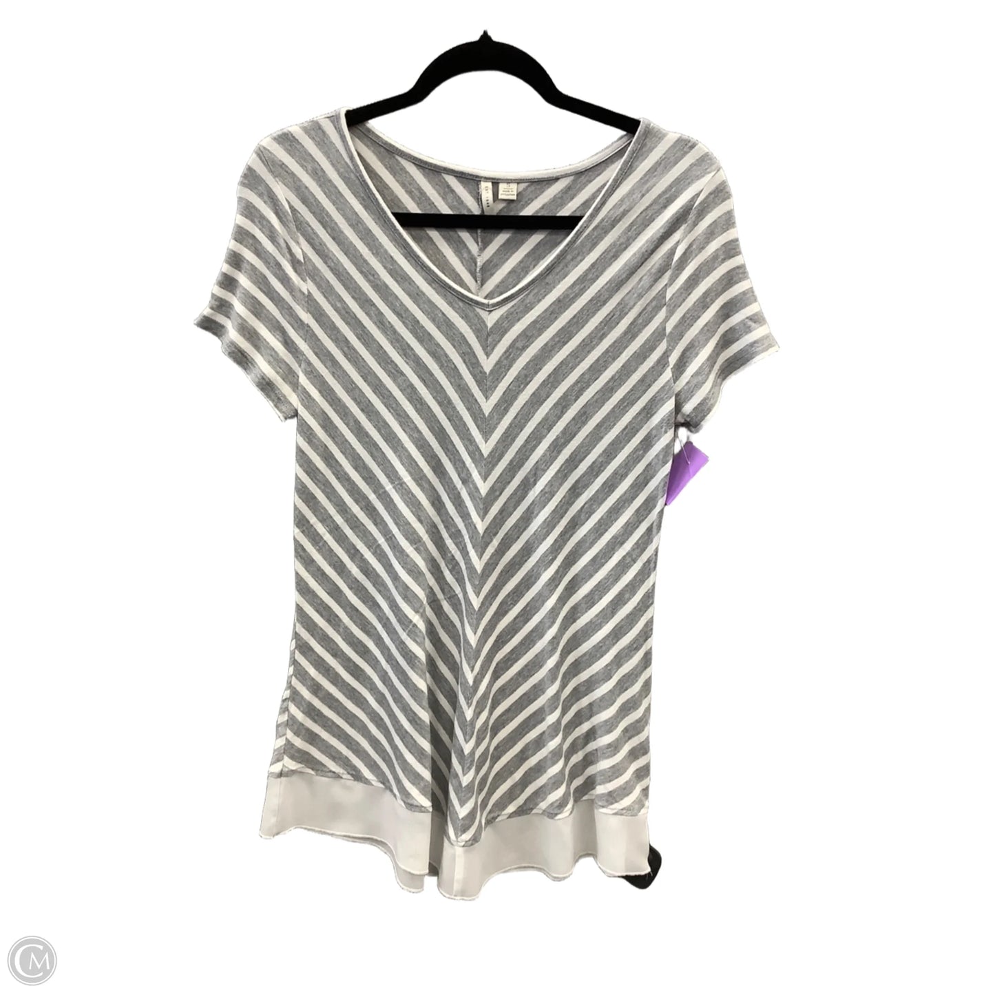 Top Short Sleeve By Cato In Grey & White, Size: S